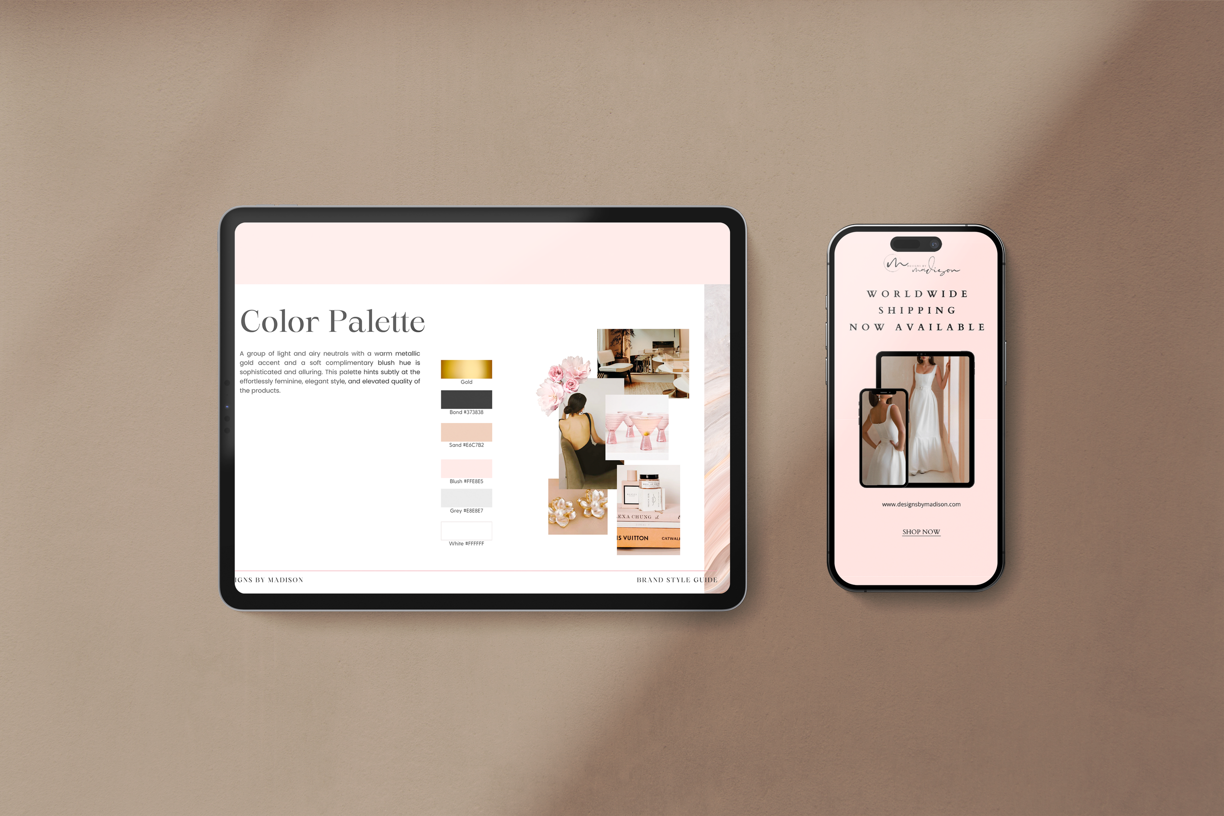 We craft bespoke brand style guides that capture your brand’s unique identity. See an example below and schedule a call to create yours.